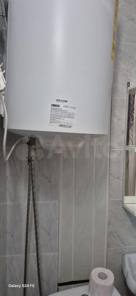 Санузел совмещенный, оснащен сантехникой и стиральной машиной имеется водонагреватель.