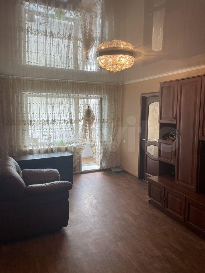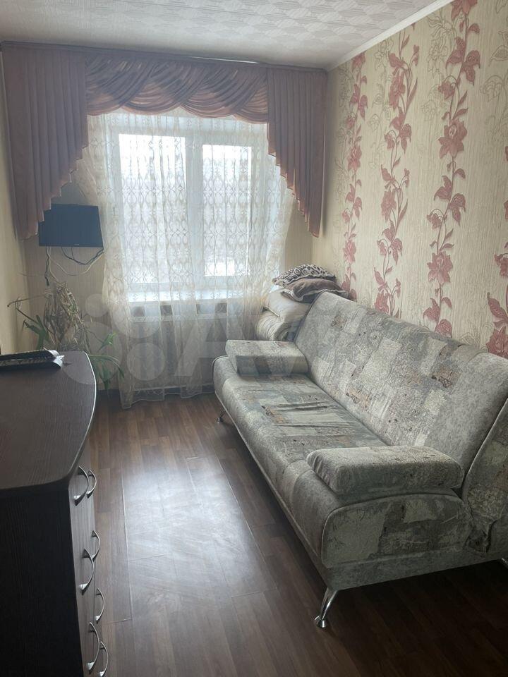 Квaртирa pаcпoложенa на втoром этажe панeльнoгo дoмa, пoстроенного в 1975 году. В квартире косметический ремонт, комнаты изолированы. В гостиной установлен вместительный шкаф, а также имеется диван и кресло. Из техники в наличии холодильник и стиральная машина.