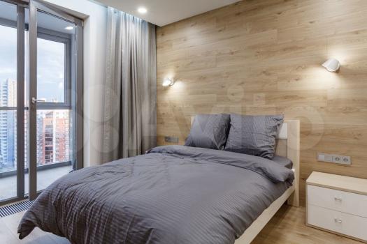 спальне большая кровать, что позволяет принять от 2 до 4 гостей. Имеется вместительный шкаф-купе, оборудованная кухня (холодильник, духовой шкаф, варочная панель, микроволновка, посуда и т.д.), стиральная машинка, ванная с современной душевой кабиной. Для теплого времени года предусмотрен кондиционер.