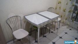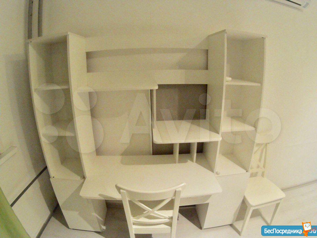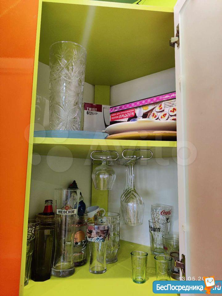 Полностью мебелирована: кухонный гарнитур (с посудой), диван, 2 шкафа-купе, письменный стол, обеденный стол со стульями,