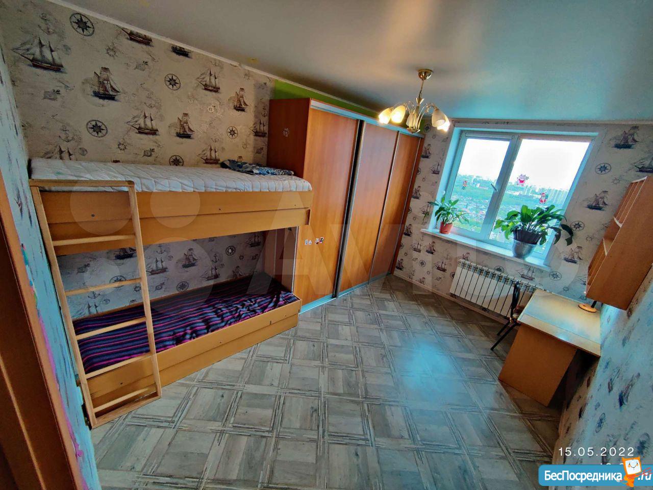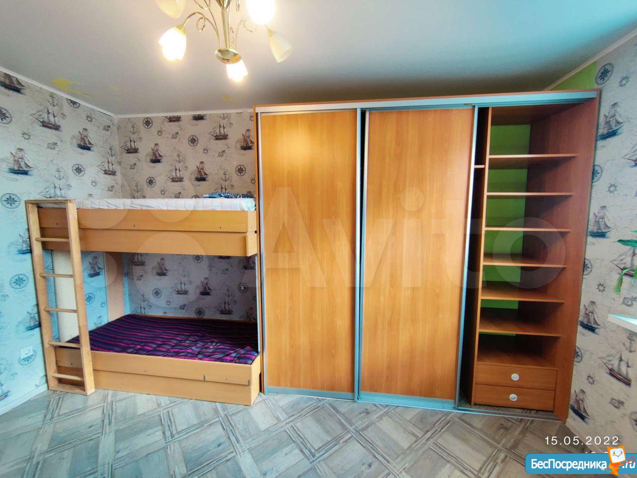Ремонт хороший свежий, вся необходимая мебель. Детская комната оборудована двухъярусной кроватью. Вблизи дома есть три детских сада, три школы, магазины продуктов и парк Гагарина для прогулок, детские площадки.