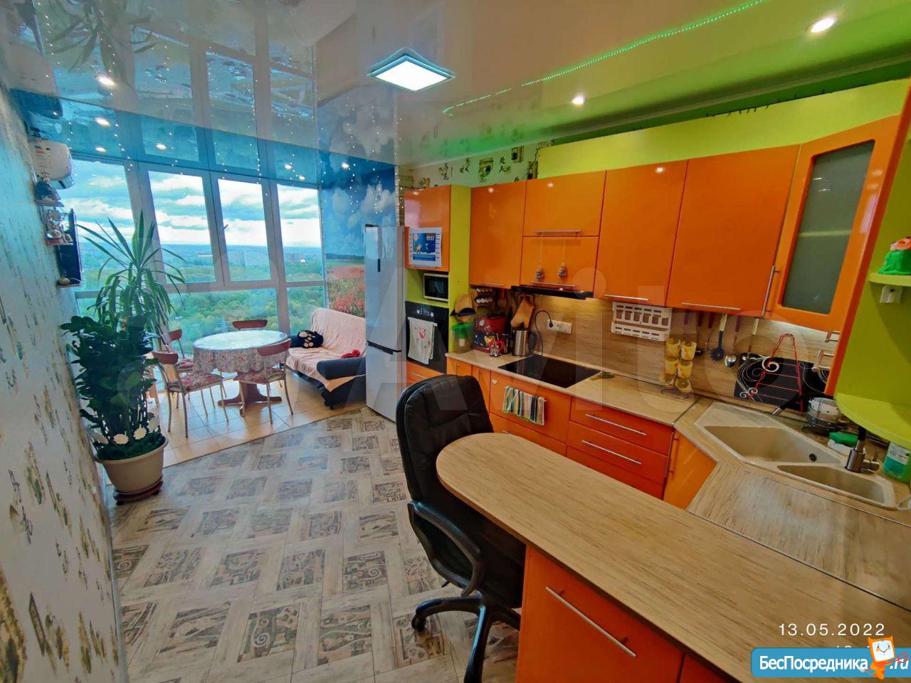 Уютная видовая квартира-пентхаус на 24 этаже, НЕ угловая, шикарный вид на город через панорамные окна в пол на кухне и захватывающий вид на Волгу с другой стороны в комнатах.