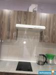 Есть вся необходимая для проживания техника: стиральная машина LG, холодильник, варочная панель Hansa, вытяжка и электрический чайник.
