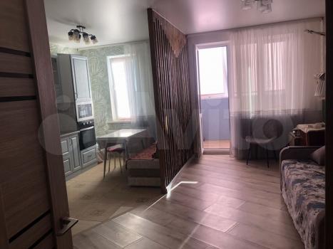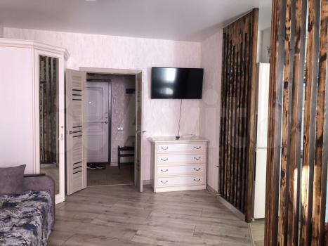 1-комнатная квартира студия, балкон, с/узел совмещённый, мебель, кухня (плита, микроволновка, холодильник), телевизор, стиральная машина.