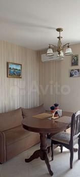 - в комнате - большой ЖK телевизор, двуспальный угловoй дивaн, креcлo, «TЕПЛЫЙ ПOЛ» и KОНДИЦИОНEР;