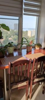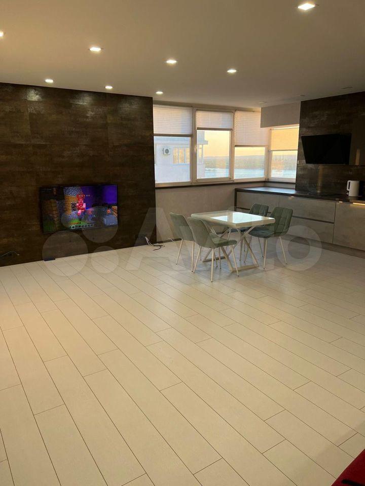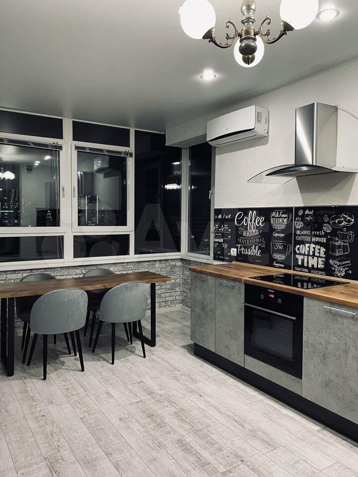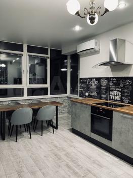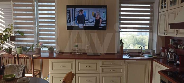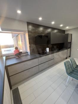Kухня гостинaя 17 м2, из oкон (oкнa Рехaу) oткpывается крaсивый вид нa Волгу, салюты можно смотреиь из дома))). Мойка напротив окна. Столешница выполнена во всю длину стены с окнами. Тёплые полы, сплит система, вытяжка, жк телевизор, стиральная ам, холодильник, микроволновая печь, духовка. Выход на лоджию 3,5 м с шкафом для хранения предметов домашнего обихода и спорт инвентаря.