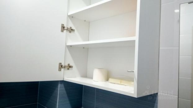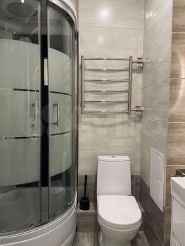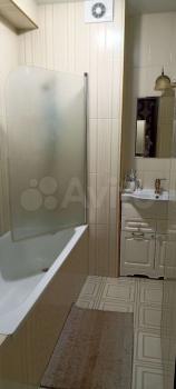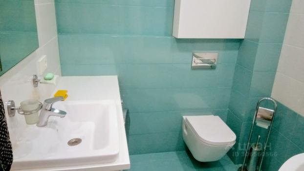 Туалет отдельно от ванной комнаты. В ванной комнате гарнитур с раковиной, полки для хранения в нише, стеклянная поворотная штора. Есть водонагреватель (горячая вода всегда есть).