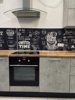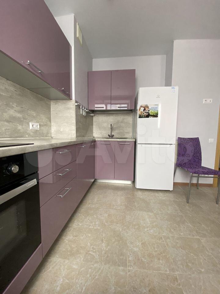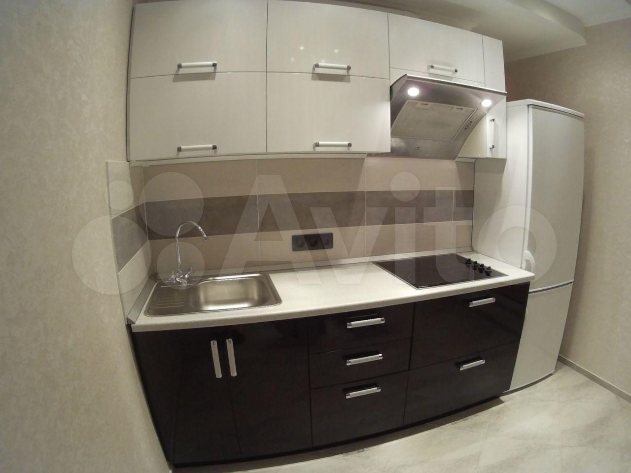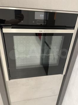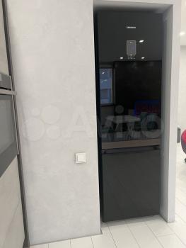 - современная кухня со встроенной техникой, холодильник.