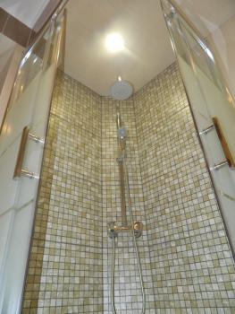 Супер огромная ванная комната, в ней можно жить :))))) где имеется огромный душ, беде, водонагреватель, полотенцесушитель, тёплый пол. Очень удобный двухуровневый паркинг в доме, можно спуститься в паркинг на лифте!