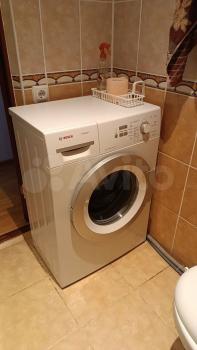Кухня оборудована всем необходимым: газовая плита, холодильник, микроволновая печь и стиральная машина. Санузел совмещенный.