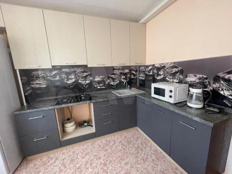 Из удобств: Холодильник, варочная панель газовая, духовой шкаф электрический, микроволновка, стиральная машина, wi-fi и сплит система. Также большой шкаф для вещей и удобный диван.
