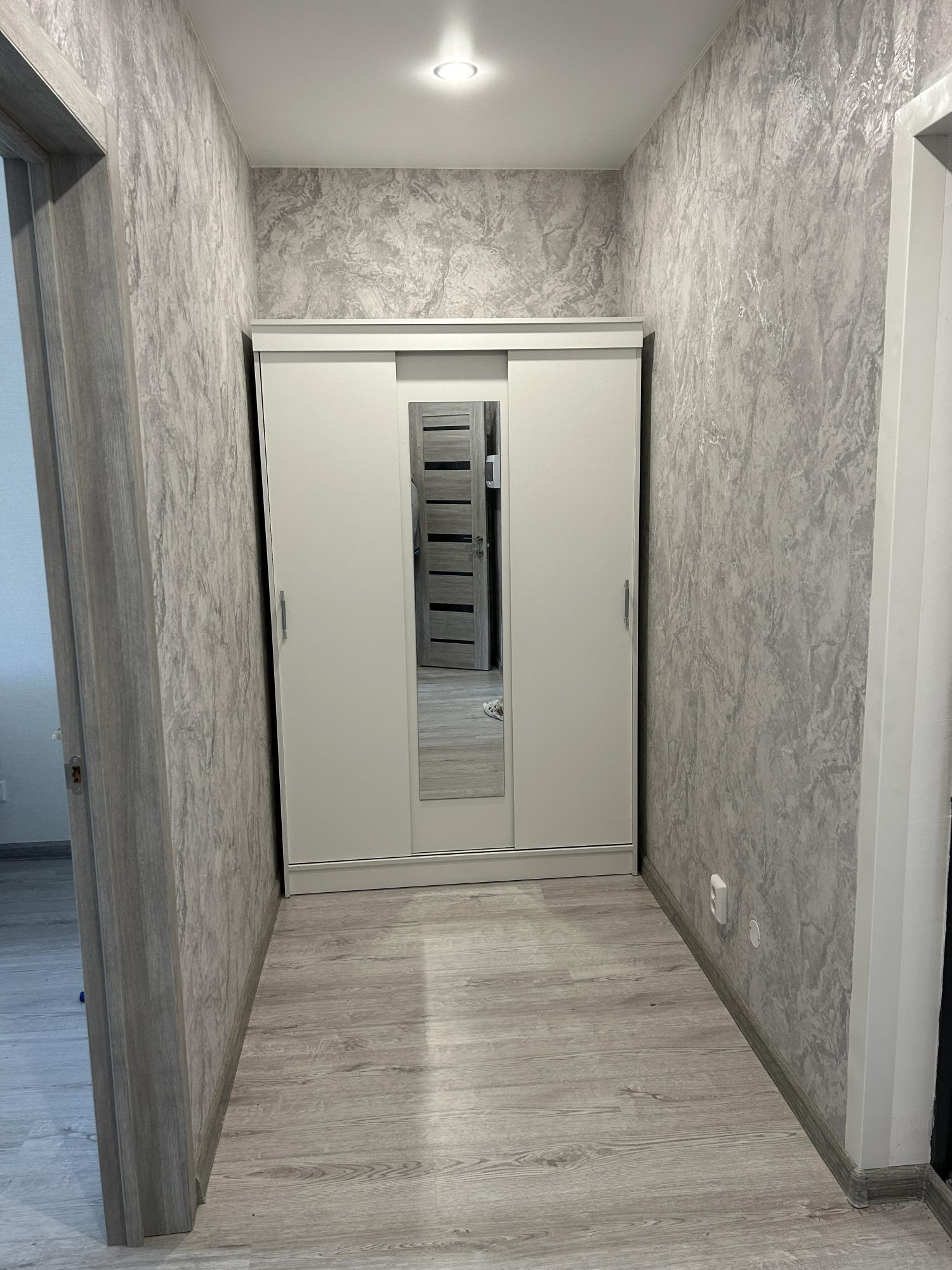 Квартира с новым ремонтом, Вы будете первыми жильцами. Гостиная, отдельно оборудованная гардеробная, ванная комната с душевой, кухня, которая имеет выход на балкон.
