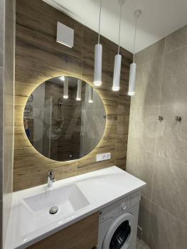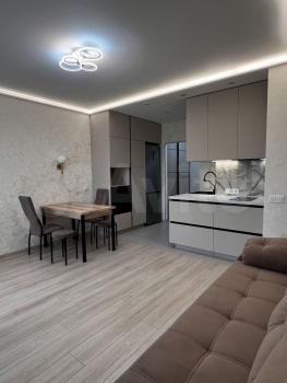 Сдаётся уютная однокомнатная квартира. Дом построен в 2024 году, современный жилой комплекс с подземной парковкой. Хороший ремонт, ещё никто не жил, вы будете первыми. Из техники: индукц. плита, вытяжка, холодильник, кондиционер, стир. машина, бойлер. Мебель: кухня, диван, двуспальная кровать, шкаф купе.