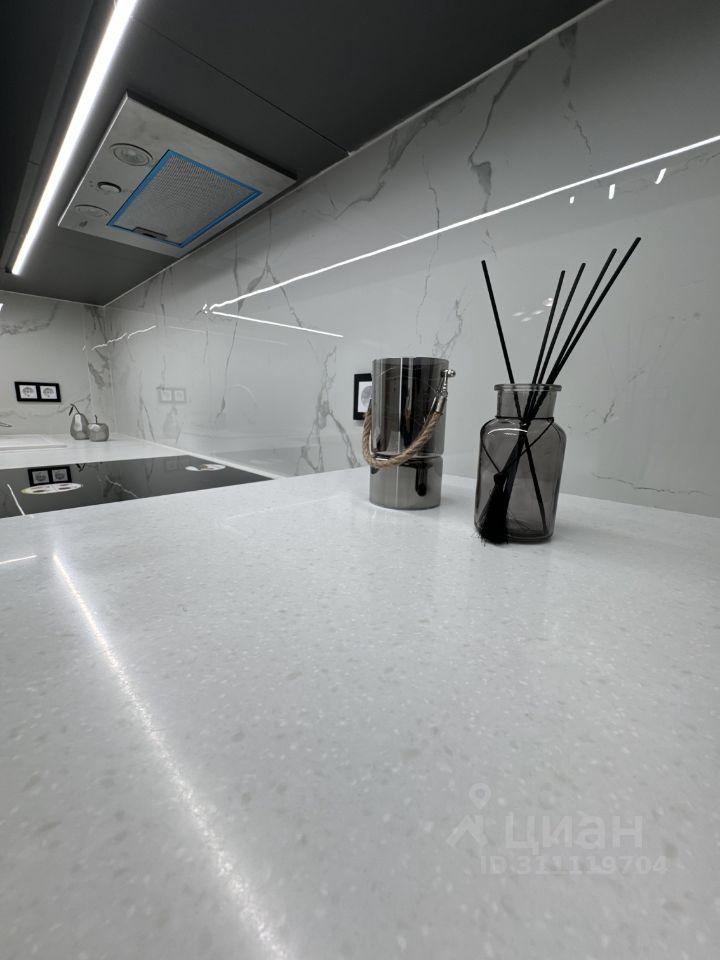 Просторная кухня 11м2 с современным кухонным гарнитуром и всей необходимой техникой. Встроенная микроволновая печь. Плита - индукционная. Каменная мойка. Фильтр для воды встроен в кухонный смеситель. Кондиционер. Телевизор. С кухни есть выход на застекленный балкон 5м2 который оборудован стеллажами для удобства хранения.