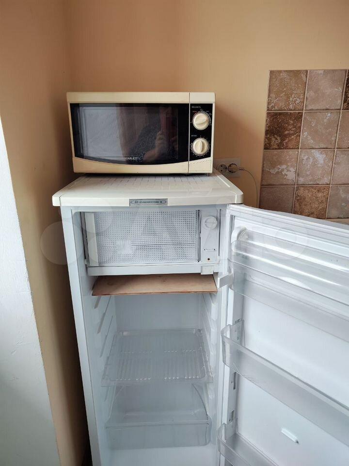 холодильник, плита, микроволновка, стиральная машина, телевизор.