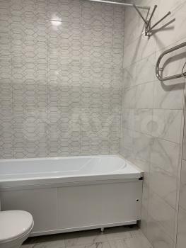 Ванная комната совмещённая, современная отделка, установлена ванна и стиральная машина