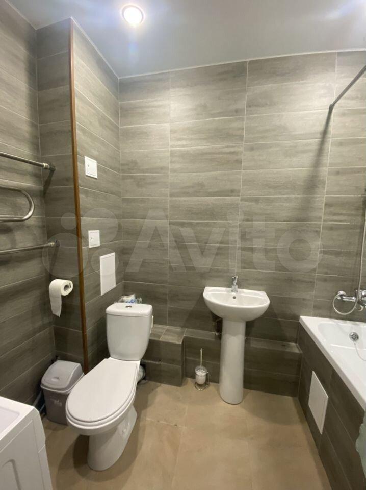 В ванной комнате стиральная машина, зеркало тоже присутствует, (фотографии на Авито старые)