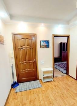 В квартире сделан косметический ремонт, делали для, себя, она полностью меблирована. В комнате и на кухне есть вся необходимая мебель, поэтому можно сразу заехать и жить. Из техники — холодильник, телевизор и стиральная машина, микроволновка, 2 телевизора, водонагреватель, электрический чайник, утюг, гладильная доска, посуда. Санузел совмещённый, в ванной комнате установлена ванна. Окна выходят на улицу, а из лоджии можно наслаждаться видом на окрестности.