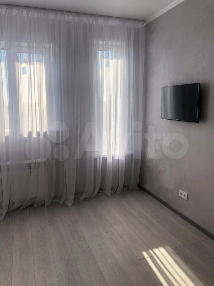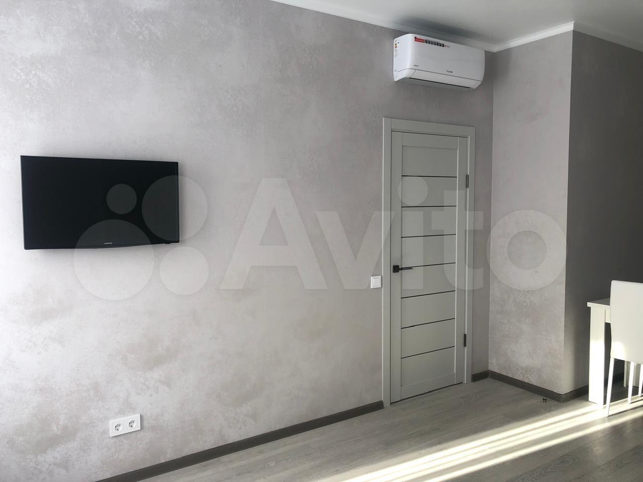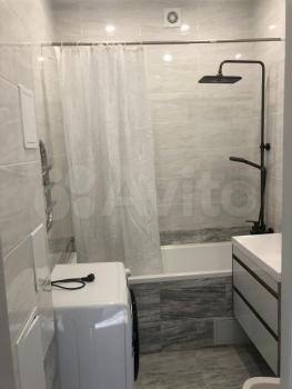 В квартире сделан евроремонт, установлена необходимая техника: кондиционер, холодильник, телевизор и стиральная машина. На кухне и в комнате есть мебель, благодаря чему можно сразу заехать и жить с комфортом. Планировка включает совмещенный санузел с ванной, что добавляет удобства.