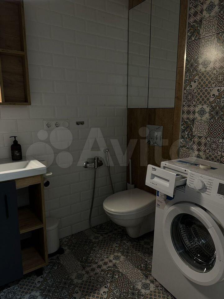 - Санузел совмещенный, есть стиральная машина, ванная, душ, зеркало;