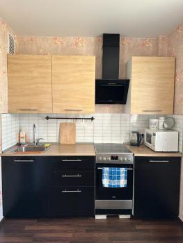 Сдам на длительный срок. Квартира с мебелью - холодильник, стиральная машина, плита и духовой шкаф, микроволновка, спальное место для двоих человек.
