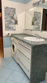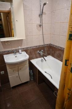 Квартира укомплектована мебелью и техникой: спальный гарнитур, детская из натурального дерева- кровать с ортопедическим матрасом, стол, тумба, шкаф для книг, комод, встроенный шкаф-купе и библиотека , обувница в коридоре, двухспальный диван на кухне, кухня с доводчиками из натурального дерева, вытяжка, духовка, варочная панель, микроволновка, холодильник, встроенные шкафы на лоджии. Ванная большая 6,7 м, в ванной шкафы, стиральная машинка, водонагреватель, гигиенический душ.