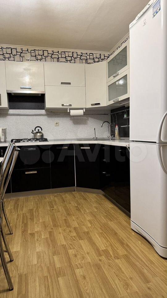 Просторная квартира, с большой кухней и большой лоджией! На кухне газовая поверхность (духовки нет), мультиварка, холодильник, стиральная машина.