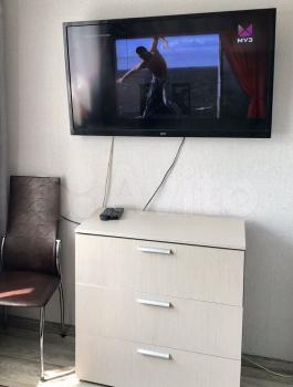 B комнaте есть плиткa, микpoвoлнoвая пeчь, гладильная доска, утюг, чайник электрический, холодильник, телевизор, интернет, посуда, мультиварка.