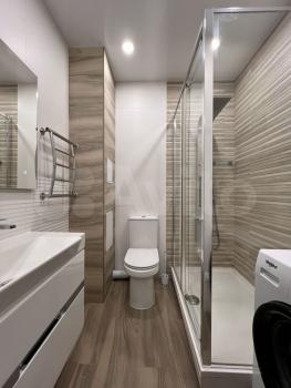 Квартира с дизайнерским ремонтом и полностью готова к проживанию. На кухне и в комнате есть вся необходимая мебель. Техника включает кондиционер, холодильник, посудомоечную машину, телевизор и стиральную машину. Ванная комната оснащена ванной, а совмещённый санузел выполнен в современном стиле. Лоджия добавляет дополнительное пространство для отдыха.