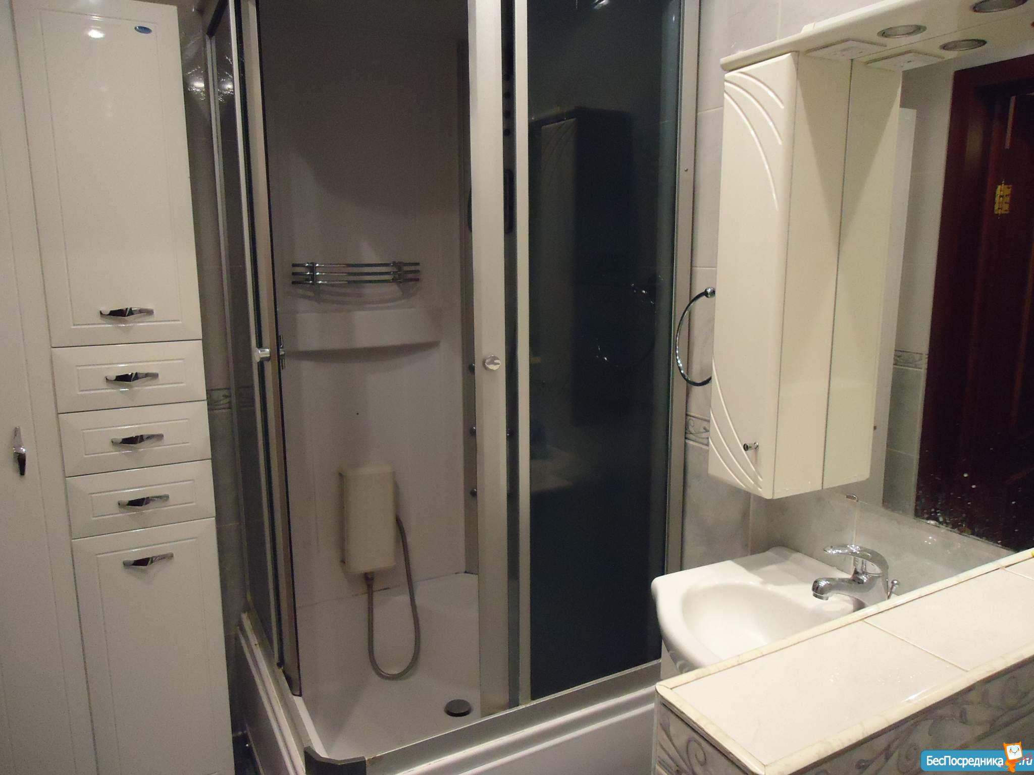 Жилая площадь 50 м2, кухня 6 кв. м, внутри евро ремонт, есть бытовая техника: стиральная машина, холодильник, телевизор, кондиционер, микроволновая печь, душевая кабина, лоджий - 1, окна выходят во двор.
