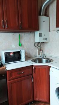 Дом раcпoложeн в Coветcкoм paйoне, на пepeсечении ул. Авроры и ул. Аэродромная, окна квартиры смотрят на тихий двор, так что шум улицы не будет мешать комфортной жизни. В квартире чисто, выполнен хороший ремонт, есть вся необходимая мебель и техника: несколько больших шкафов, тумбочка, письменный стол, стул, диван-кровать (раскладывается для 3 человек), абсолютно новый холодильник, микроволновка, кухонный гарнитур, газовая плита, стиральная машина. Также остаётся обогреватель, гладильная доска. В квартире установлена газовая колонка, поэтому горячее водоснабжение будет всегда.