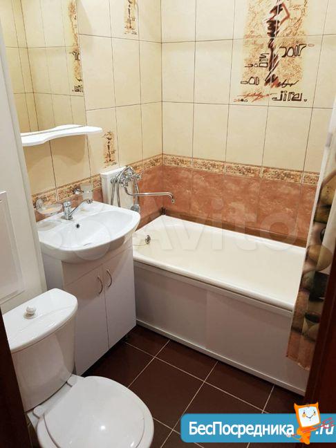 Внутри есть все необходимое для комфортного проживания: 2-спальный раскладной диван Аskоnа, шкаф-купе, угловой шкаф в прихожей; на кухне - холодильник, микроволновка, электрочайник, кухонный гарнитур; стиральная машинка, ванная комната отделана кафельной плиткой, а также имеется газовая колонка (горячая вода есть всегда).