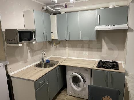 Квартира полностью меблирована: 2 дивана, шкаф, комод, письменный стол, стиральная машинка, кухонный гарнитур.