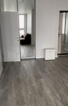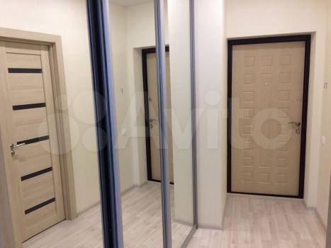 В коридоре: просторная гардеробная с 3мя отсеками, двери у гардеробной - зеркала.