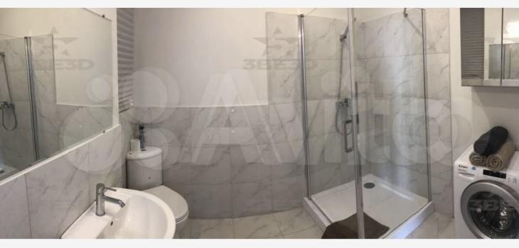 Ванная комната (совмещенная) имеет: стиральную машину, душевая кабина, унитаз, раковина, сушилка для белья.