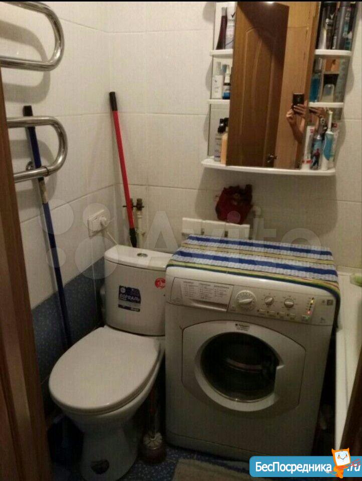 В ванной комнате: плитка, новые ванна и унитаз, трубы заменены, хорошая стиральная машина, удобный шкаф с зеркалом.