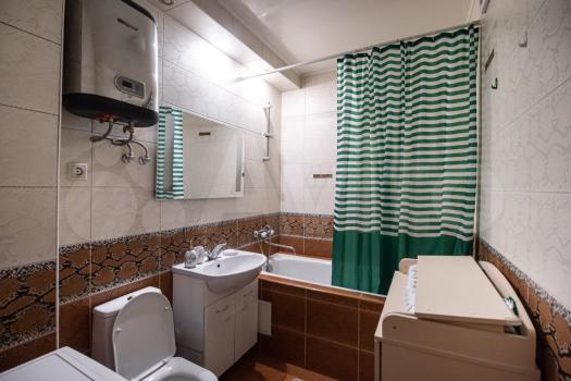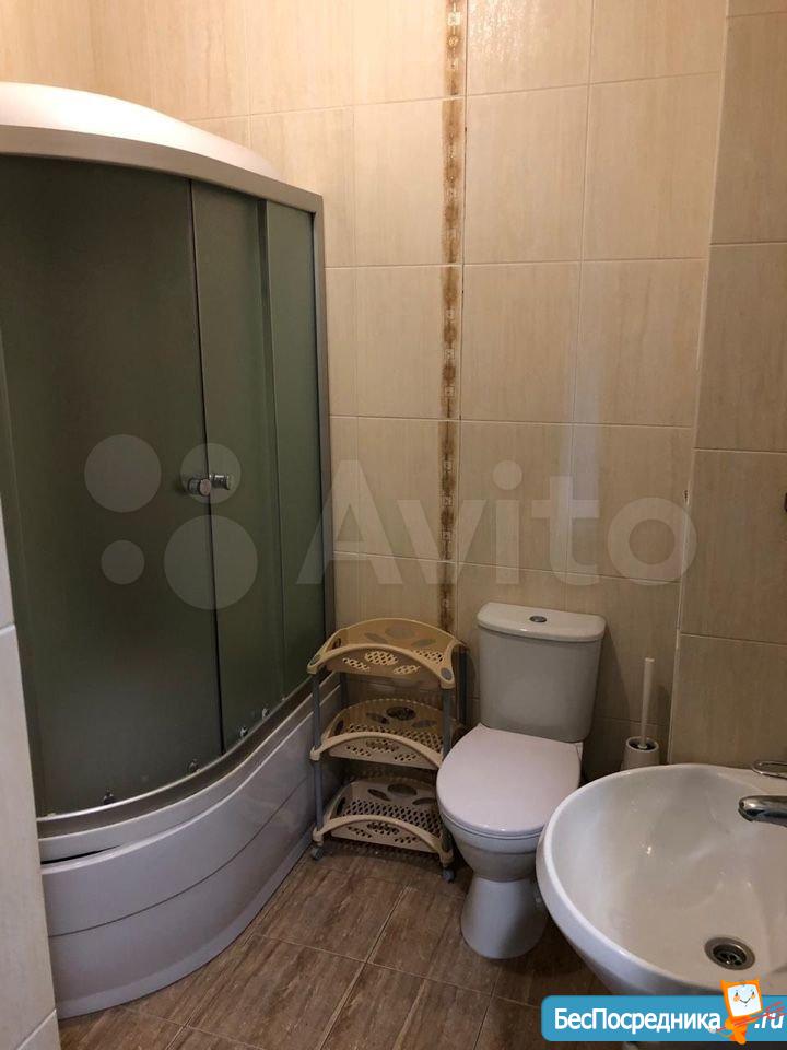 В квартире сделан качественный евроремонт. Есть всё необходимое для комфортного проживания: кондиционер, холодильник, телевизор и стиральная машина. На кухне и в комнате предусмотрена мебель. Санузел совмещённый, оборудован современной душевой кабиной. Для отдыха и хранения вещей есть лоджия, где можно разместить необходимые вещи.