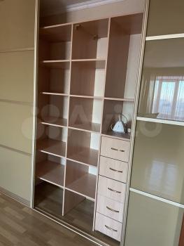 Квартира меблирована: в спальне есть кровать, а в гостиной — диван, шкаф и стеллажи. Из окон открывается вид на закрытую территорию двора( шлагбайм)
