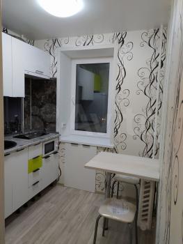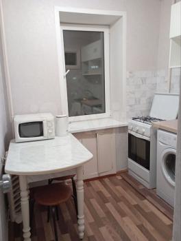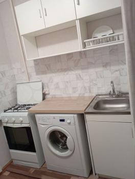 Сдаю квартиру-гостинку на длительный срок чистоплотным и порядочным людям. Комната 12 кв м, кухня 6 кв м. На кухне холодильник, стиральная машина, кухонный гарнитур и стол с табуретами. В комнате раскладной диван, шкаф-купе и стол.