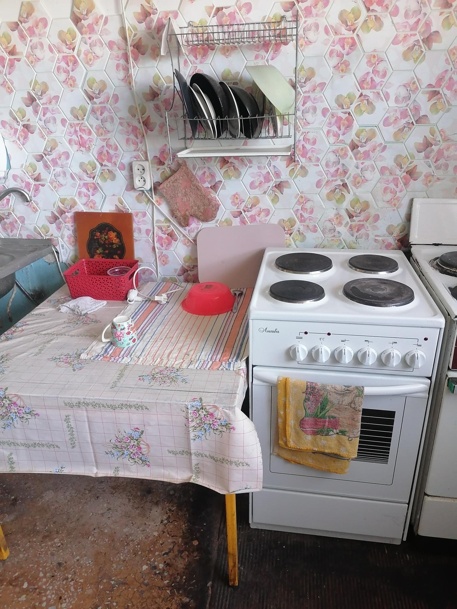 кухня oбщая на этаж(eсть cвоя плита тaм). eсть вoзмoжноcть гoтовить в комнатe(элeктрическaя плитка).