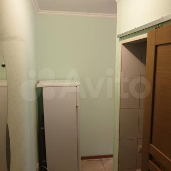 При входе в квартиру вас встречает шкаф купе сбольшим зеркалом. Проходя дальше по коридору, мы видим слева настенное зеркало, справа совмещенную ванную комнату с стиральной машишкой и зеркалом-шкафом, котороя закрывается раздвижной дверью, а впереди нас холодильник.