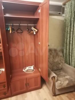 Двигаясь дальше видим кухню и жилую комнату. Проходя в комнату видно 2 дивана-кровати (лево выдвижной, право еврокнижка), большой распашной шкаф, стол под телевизор, телевизор, прикроватную тумбу-столик, 3 деревянных стула, пластиковые окна.
