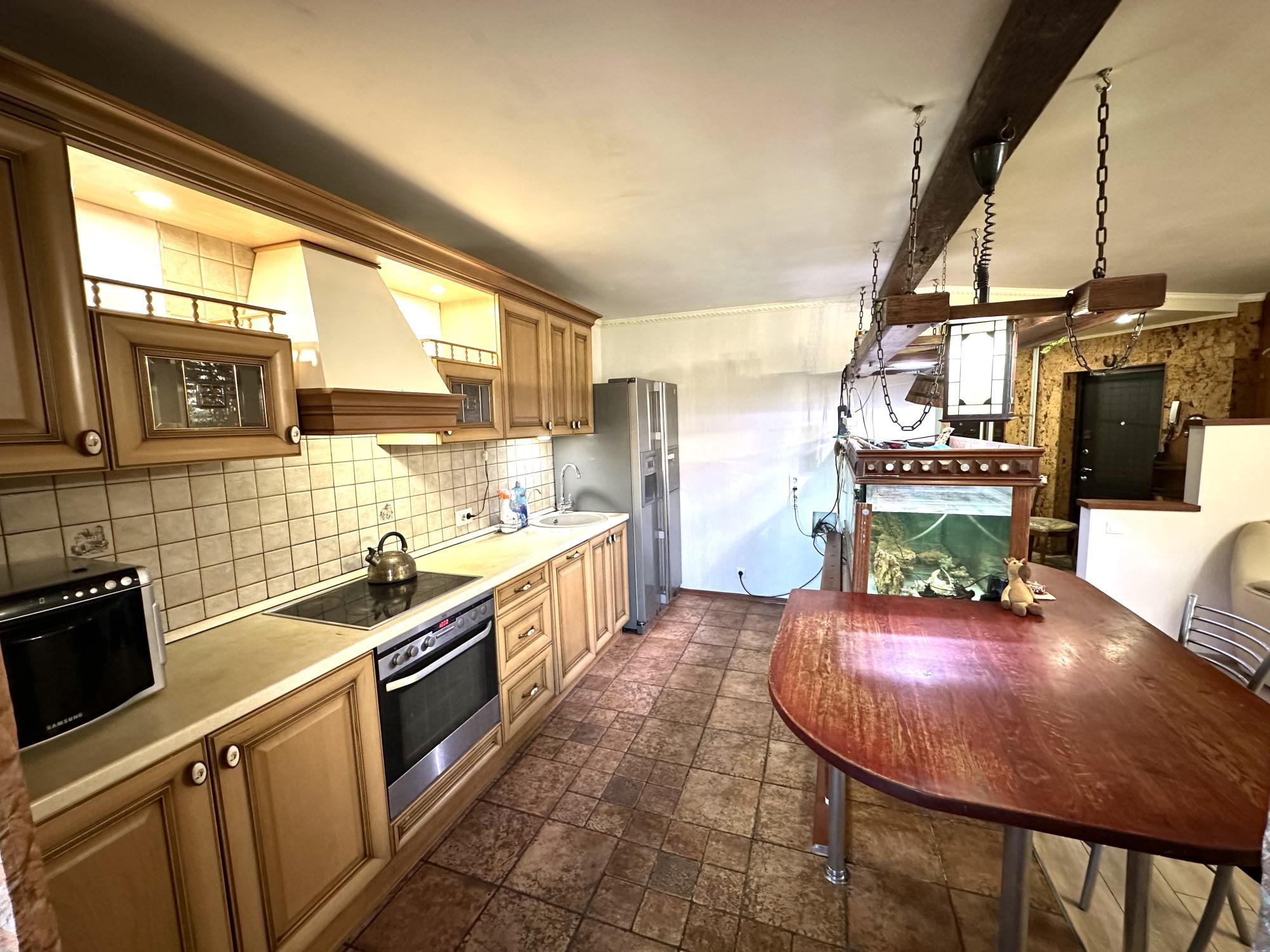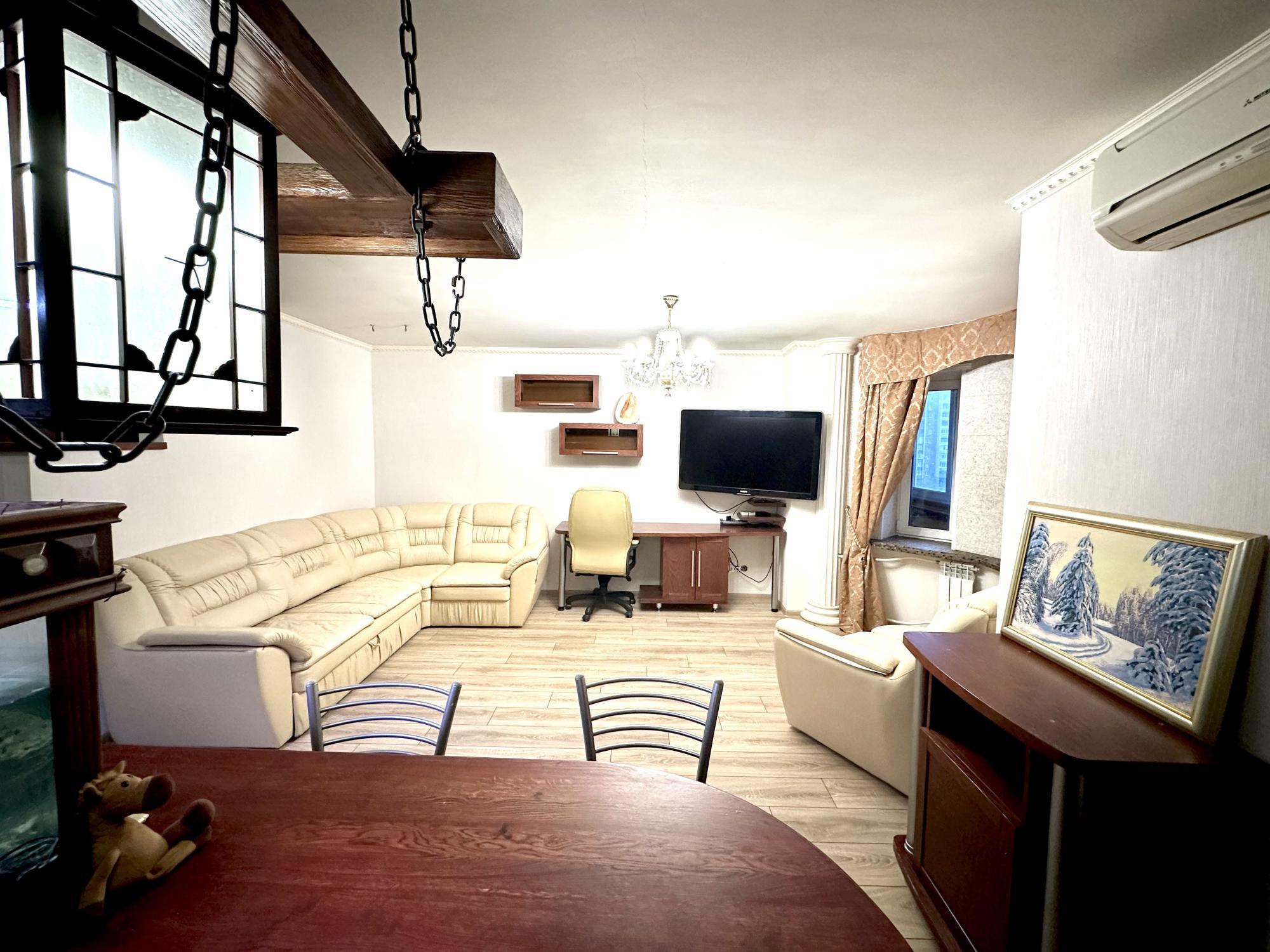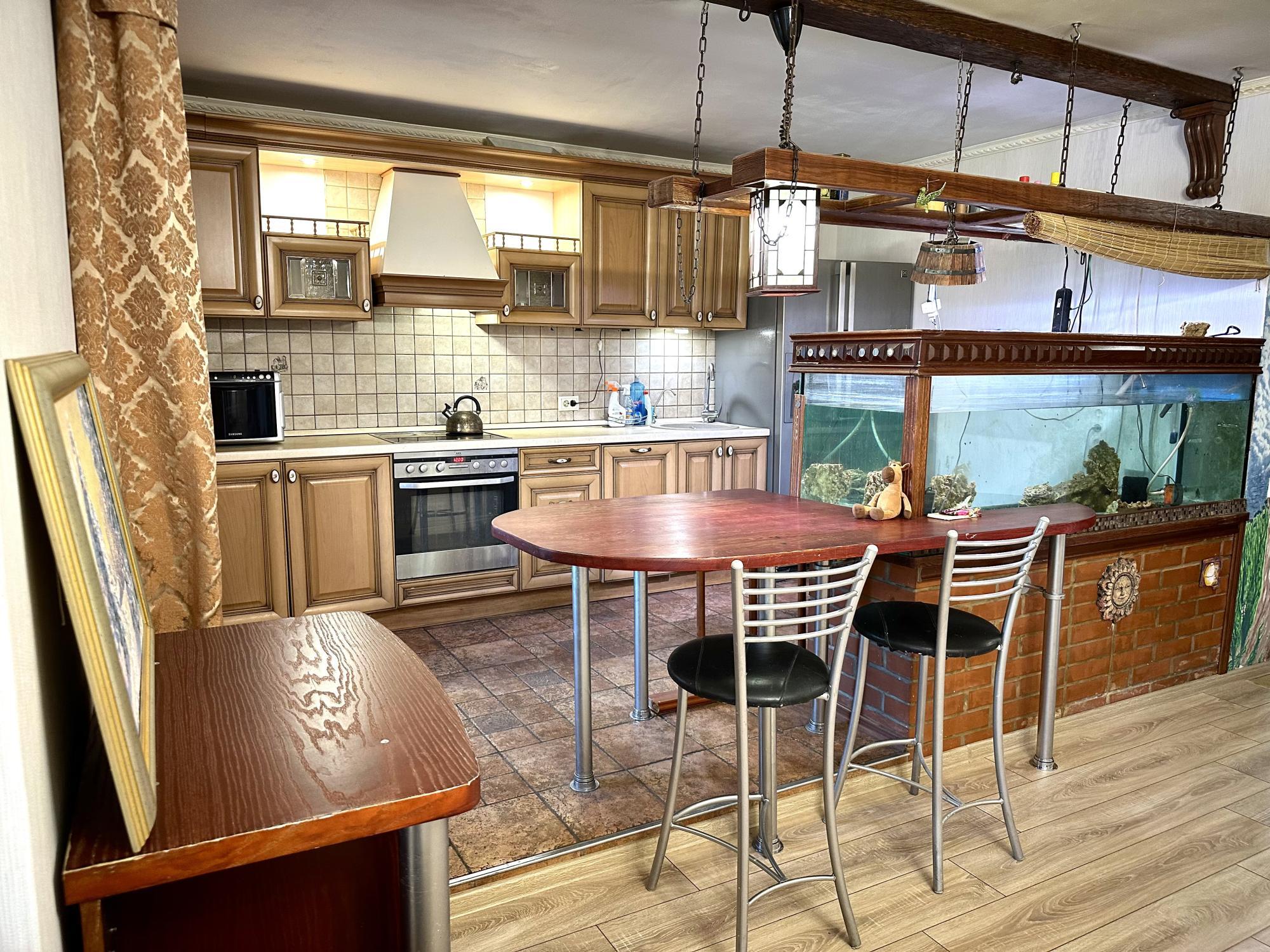 В квартире большой кожаный диван( раскладной), кожаное кресло и стул на колесах, кухня из массива, большой двухдверный холодильник, духовка и варочная поверхность бренда Electrolux aeg, микроврлная печь, стиральная машинка lg, джакузи, при желании вы можете пользоваться аквариумом.