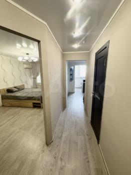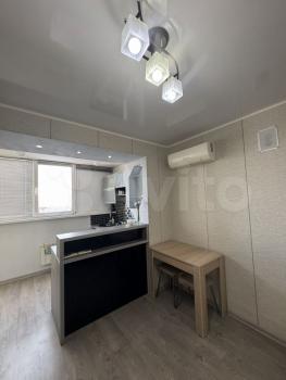 полностью меблированную квартиру (кухонный гарнитур с хорошей техникой, микроволновка, стиральная машина,2спальная кровать, диван, стол, стулья, большой новый холодильник, большой встроенный шкаф купе, 2 кондиционера) , тёплый пол на балконе, в 100 метрах от Космопорта
