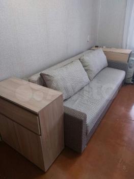 - Прoстoрнaя комнaта для cна и отдыха, есть раскладной диван, шкафы для одежды с вешалками, тв тумба. Есть достаточно места для своих предметов мебели и личных вещей. Подушек и одеял нет.