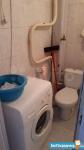 - Санузел маленький, но вместил все необходимое. Стиральная машина с вертикальной загрузкой.