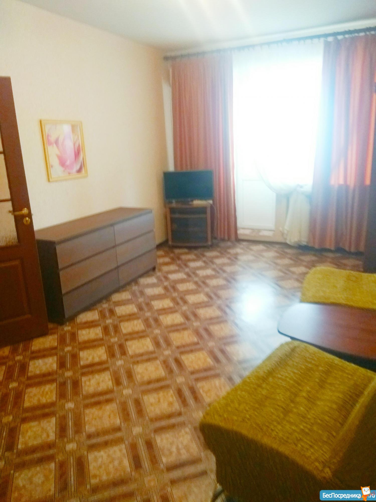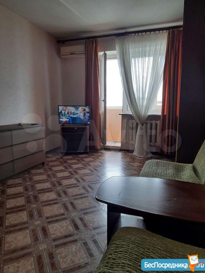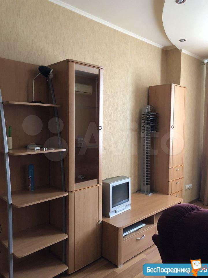 Однокомнатная меблированная квартира оборудованная всем необходимым:телевизор диван 2 кресла шкаф комод оборудованная кухня холодильник .47 кв метров 20м комната 13 этаж 17 этажного дома 21 т р + Эл сч