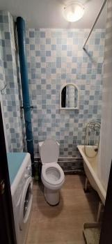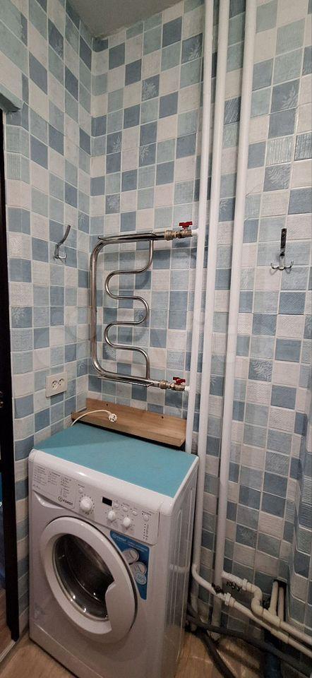 Санузел совмещенный, стояки и трубы заменены на новые. Стиральная машина есть.