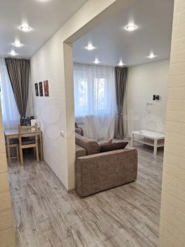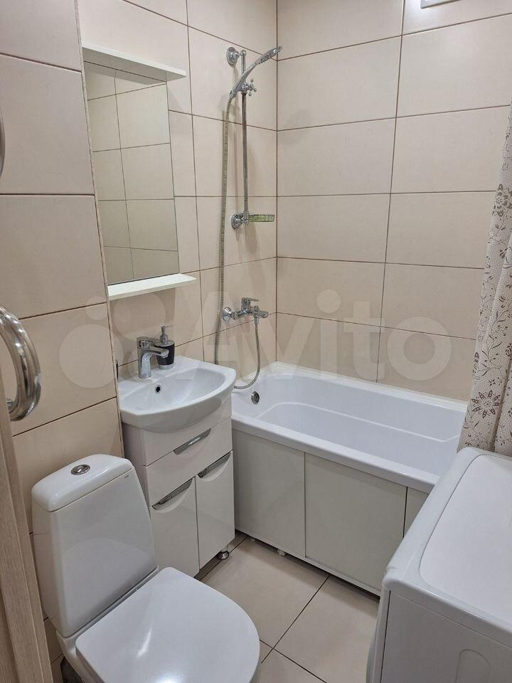 В квартире выполнен косметический ремонт, что создаёт приятную атмосферу для жизни. В комнате и на кухне есть необходимая мебель, поэтому можно сразу заехать и жить. Квартира оборудована всей нужной техникой: кондиционер, холодильник и стиральная машина. Совмещённый санузел оборудован ванной.