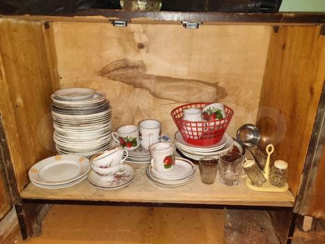 Есть погреб, холодильник, плита, спальное место, водонагреватель газовый, набор посуды и столовых приборов.